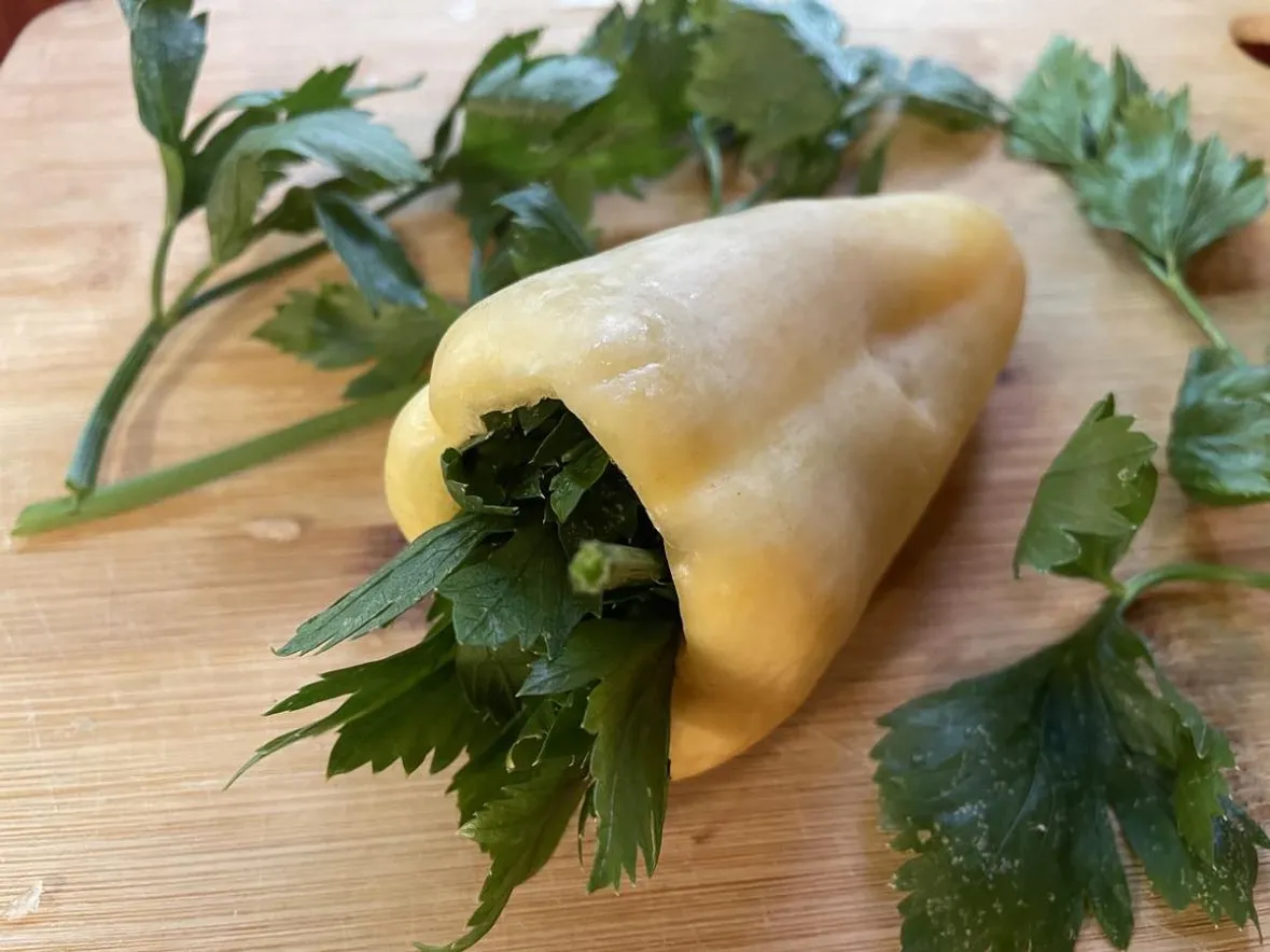 A lényeg, hogy a kicsumázott paprikába kerüljön minél több zöldfűszer, vagy akár zöldség is: egy kis szálakra vágott káposzta, paradicsom is mehet bele. Így a saját ízlésetek szerint készítheted el; de amire mindenképpen szükséged lesz a paprikán kívül, az a petrezselyem- és a zeller-zöld. Van, aki emellé még tesz egy kis friss lestyánt is a paprika belsejébe.