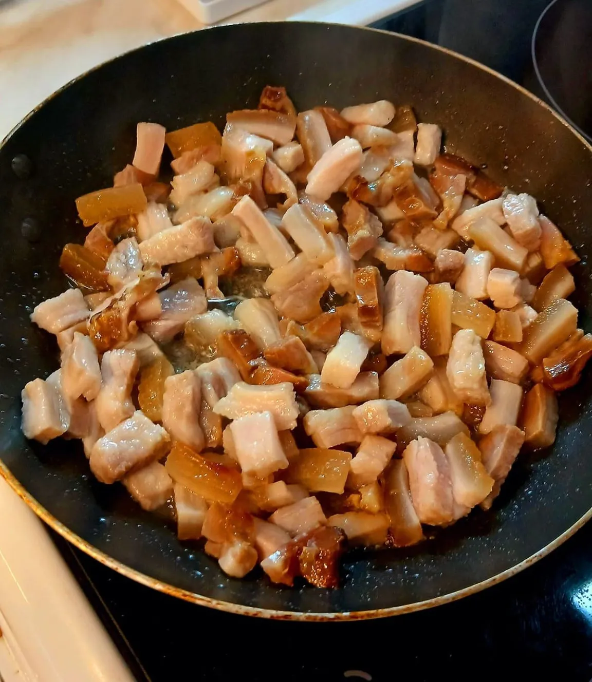 A szalonna alaphozzávaló a magyar konyhában, hiszen sokkal finomabb a pörkölt, a paprikás krumpli, ha az alapot szalonnával indítjuk – de rakott ételben is kiváló a húsos szalonna. Érdemes kipróbálni, milyen nokedlival rakva, és ne feledkezz meg a titkos összetevőről, a sajtról sem, amitől krémes lesz és isteni finom. Ez az étel nagyon eteti magát, és brutálisan laktató, így átmelegít az őszi hidegben. Várkonyi Éva Mária a Vali hagyományos konyhája Facebook csoportban osztotta meg a receptet.