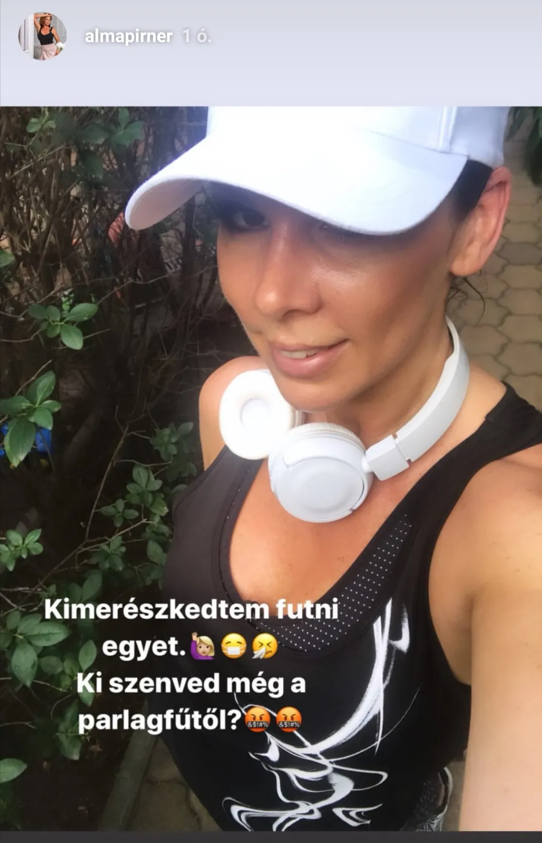 „Kimerészkedtem futni egyet... Ki szenved még a parlagfűtől?” – írta a fotóhoz Alma, pár mérgelődő hangulatjel kíséretében.