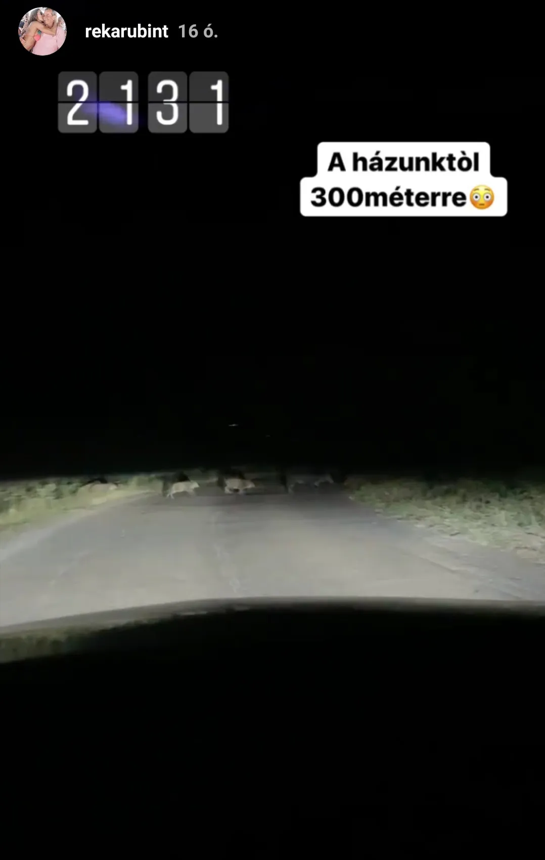 Nagyon meglepődött Rubint Réka, mikor késő este házuk utcájába fordult. A fitneszedző egy vaddisznócsaládot videózott le a kocsijából, ahogy azok áthaladnak az úton, a bejegyzéshez pedig egy aggódó hangulatjelet is mellékelt.