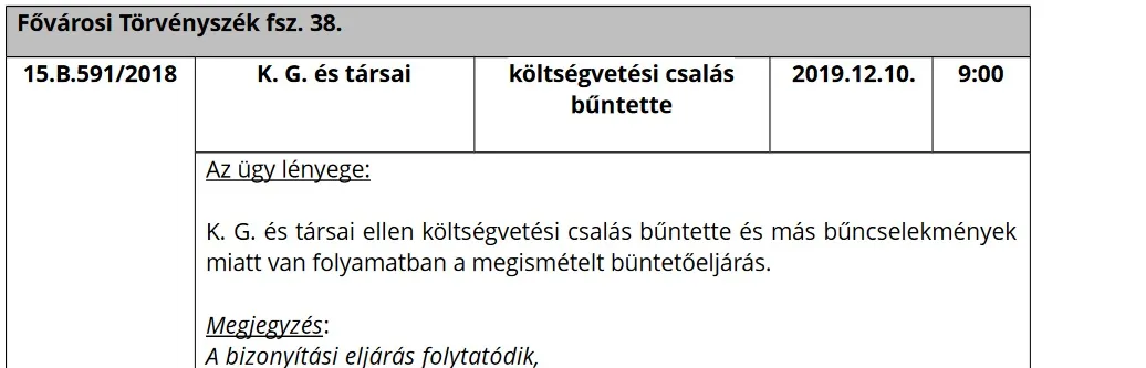 „Megkeresésével kapcsolatban tájékoztatjuk, hogy az Ön által megjelölt ügyben a következő 2020. április 2-i és 8-i tárgyalási napokon tanúmeghallgatások várhatók” - írtak a válaszlevelükben.