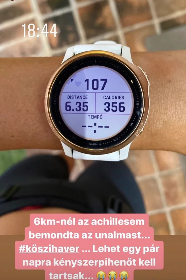 „Hat kilométernél az Achillesem bemondta a unalmast. Köszi haver... Lehet, egy pár napra kényszerpihenőt kell tartanom” – írta a fotóhoz Timi, akiért rajongói nagyon aggódnak.