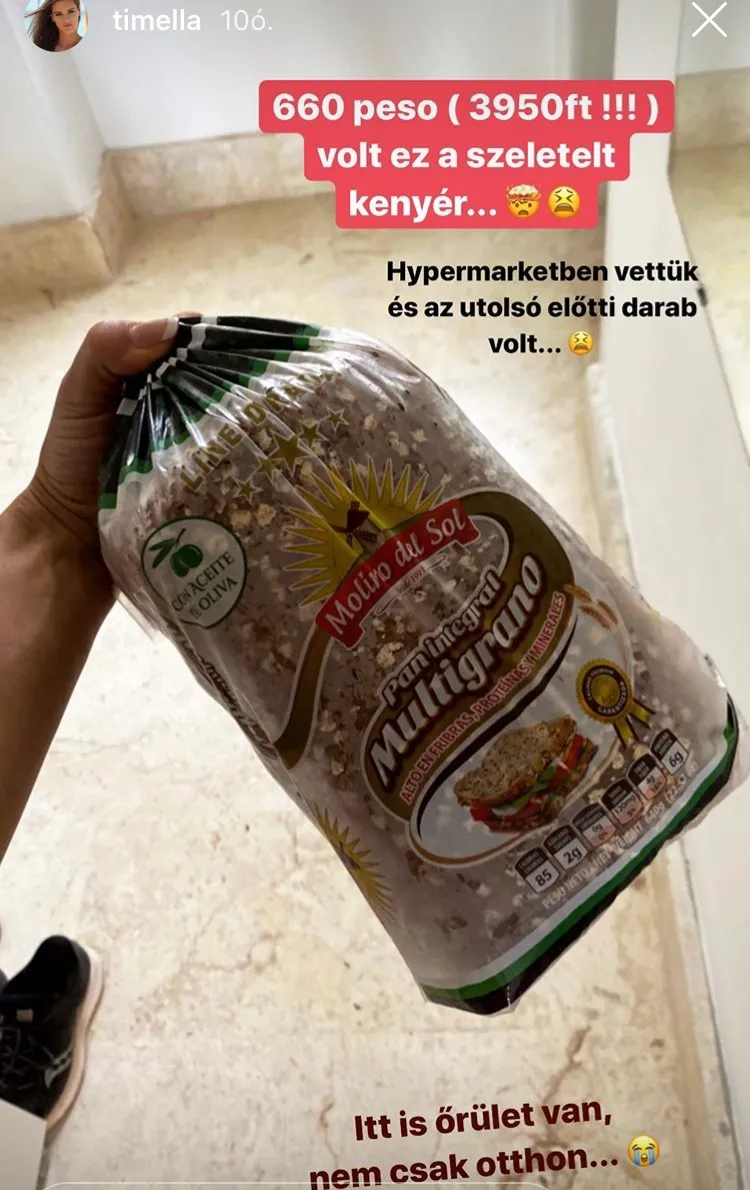 „3950 forint volt ez a szeletelt kenyér. Hipermarketben vettük, és az utolsó előtti darab volt. Itt is őrület van, nem csak otthon” – fogalmazott a csinos riporter.