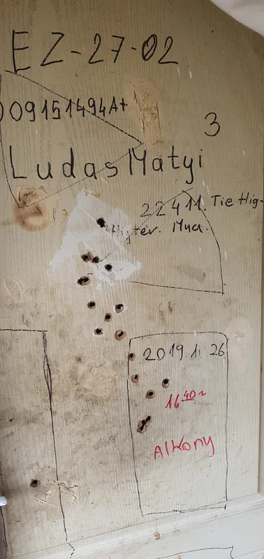 Kollégánk az ajtóra rajzolt és írt feliratok mellett különös lyukakra lett figyelmes. Az özvegy kérdésünkre elárulta, hogy az apró árkok fegyverlövések nyomai.
