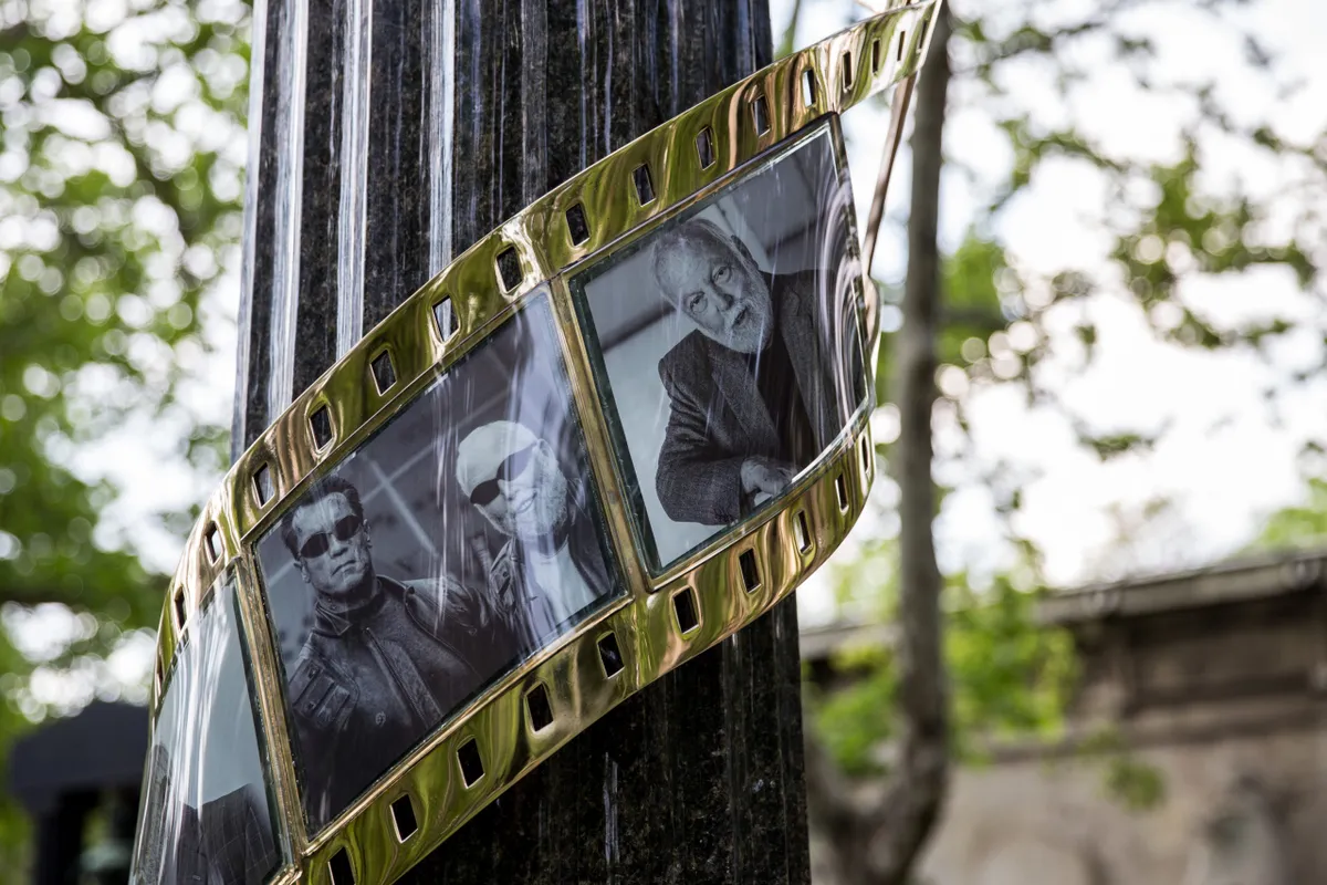 Lássuk, milyen elemek díszítik az elkészült síremléket, ami valóban méltó a filmügyi kormánybiztos szellemiségéhez és munkásságához. Már márciusban elkészült egy 3,5 méter magas görög kőoszlop, arról omlik le az 5 méter hosszú filmszalag fémből. Ebben a filmszalagban található három darab háromdimenziós festett üveg kép is: egy jellegzetes Vajna, egy részlet a Terminátorból és egy a Rambóból.