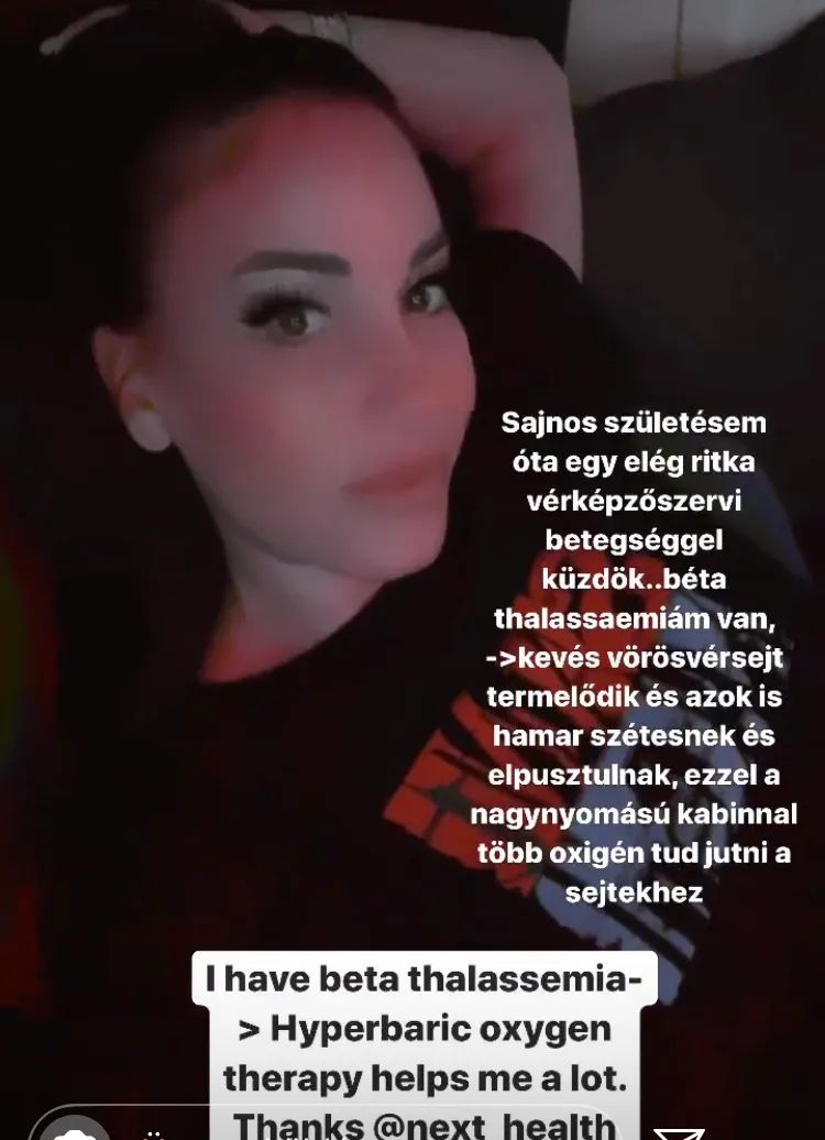 „Sajnos születésem óta egy elég ritka vérképzőszervi betegséggel küzdök. Béta thalassemiám van: kevés vörösvérsejt termelődik, és azok is hamar szétesnek, elpusztulnak. Ezzel a nagynyomású kabinnal több oxigén tud jutni a sejtekhez” – árulta el Timi, aki korábban egy másik betegségéről is beszámolt már. Mint kiderült, farfekvéssel született, emiatt pedig a csípője sokszor elmozdul.