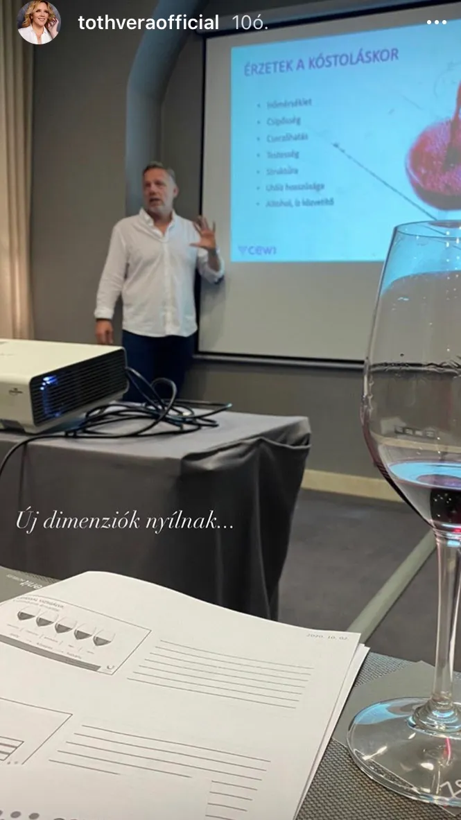 Úgy tűnik, visszaült az iskolapadba Tóth Vera! Az énekesnő az Instagram-oldalán posztolt egy fotót, amelyből könnyű kikövetkeztetni, hogy valószínűleg egy sommelier képzésen vesz részt.