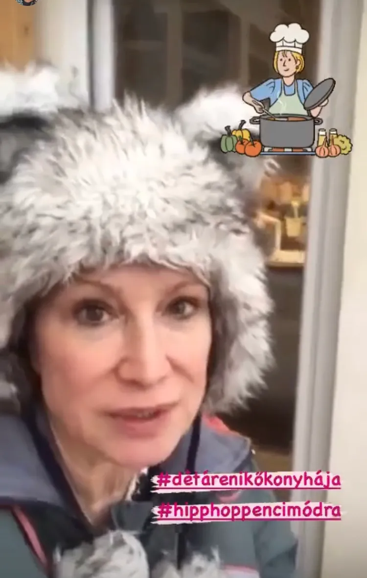 „Vissza a hétköznapokba, illetve a teraszra! Amit csak lehet, én azt kint főzöm meg, még télen is. Leveseket, húsokat, mindent. Most, hogy nincsenek már próbák, felszabadult az időm, és tudok kint főzőcskézni” – kezdte Enikő, aki szőrmés sapkában, talpig beöltözve készítette el ezúttal az ebédet, ami marhahúsleves lett.