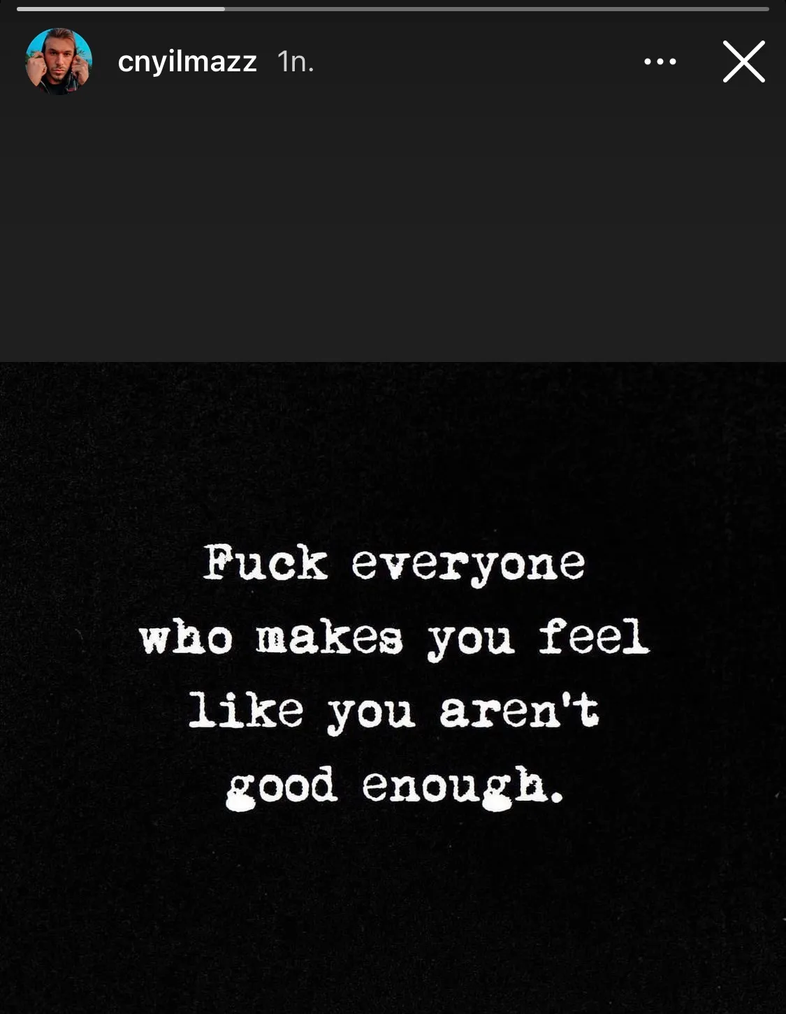 A szakítás váratlan bejelentése után azonban nem sokkal sokatmondó üzenetet tett ki Yilmaz az Instagram-oldalára – szúrta ki a Ripost. Úgy tűnik, nagyon csalódott és kissé bosszús a történtek miatt.