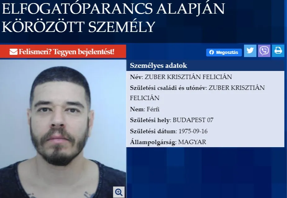 Zuber Krisztián Felicián, a TNT Intije ellen elfogatóparancsot adott ki a rendőrség ittas vezetés miatt.