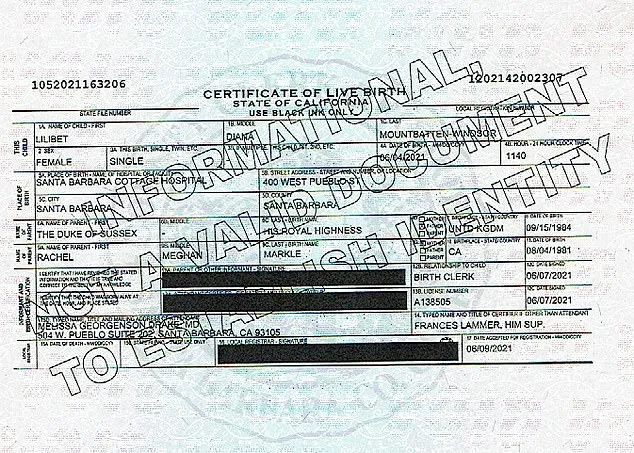 Az egyik amerikai hírportál kikérte Lilibet Diana születési anyakönyvi kivonatát, és érdekes dologra derült fény.