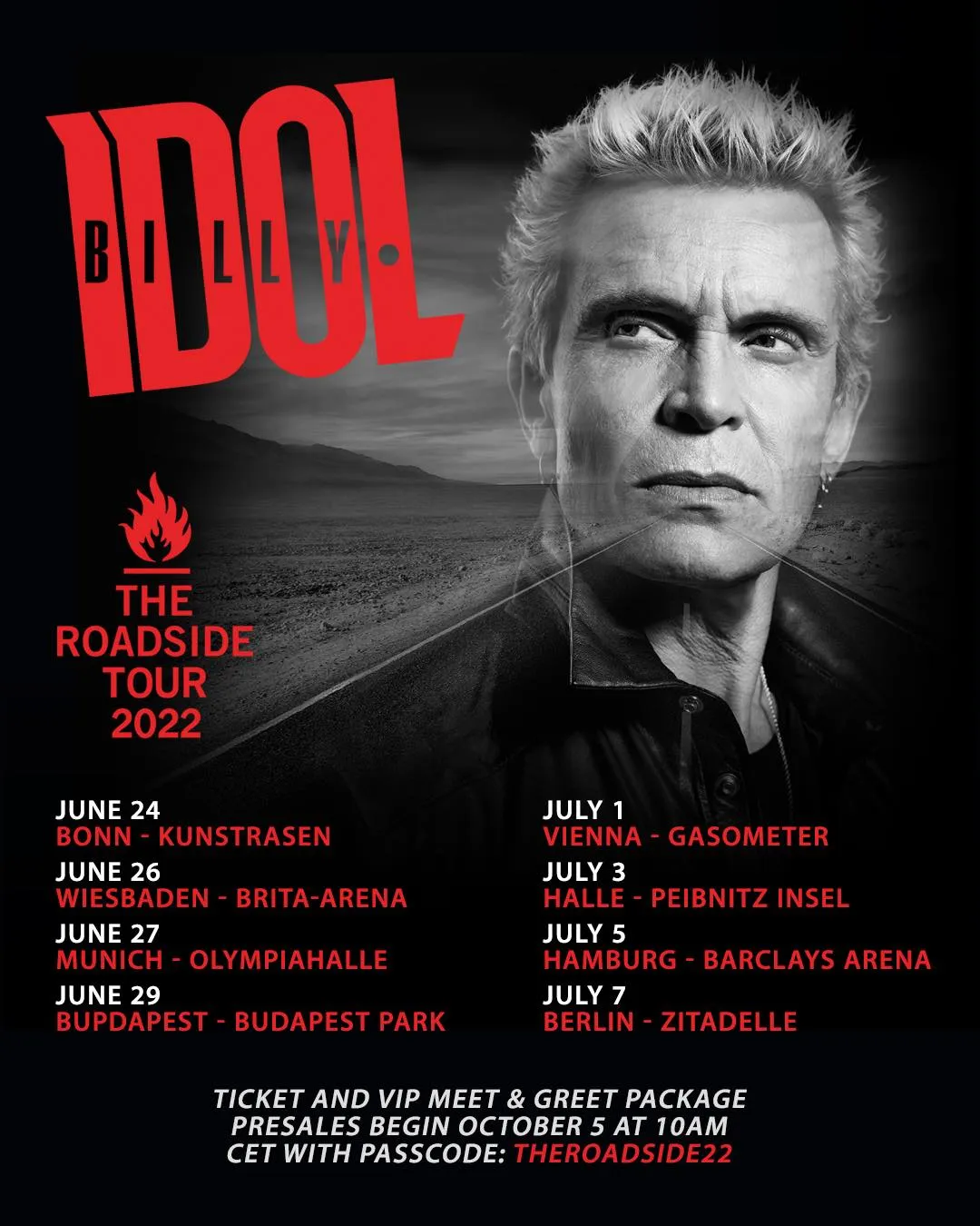 2018-as elsöprő sikerű Budapest Parkos koncertje után tehát 2022. június 29-én újra hazánkban köszönthetjük a ‘80-as évek egyik legmeghatározóbb punkrock bálványát, Billy Idolt!