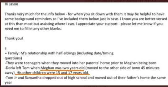 Az ítéletet nagy győzelemnek nevezte Meghan, de lehet, hogy a szavahihetőségét elvesztette az emberek felé. Kikerült ugyanis az internetre az egyik olyan email, amit elviekben Meghan ügyvédei bemutattak a bíróságon. Ebben az szerepel többek közt, hogy Meghan szülei akkor költöztek szét és váltak el, amikor ő 2 éves volt. Ekkor a féltestvérei 15, illetve 17 évesek voltak.