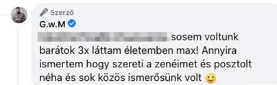 Főleg azok után, hogy G.w.M a saját Facebook-oldalán, egy kommentben fejtette ki, hogy Csuti sosem volt a barátja – a nála több mint tíz évvel idősebb férfit inkább a rajongójaként aposztrofálja.
