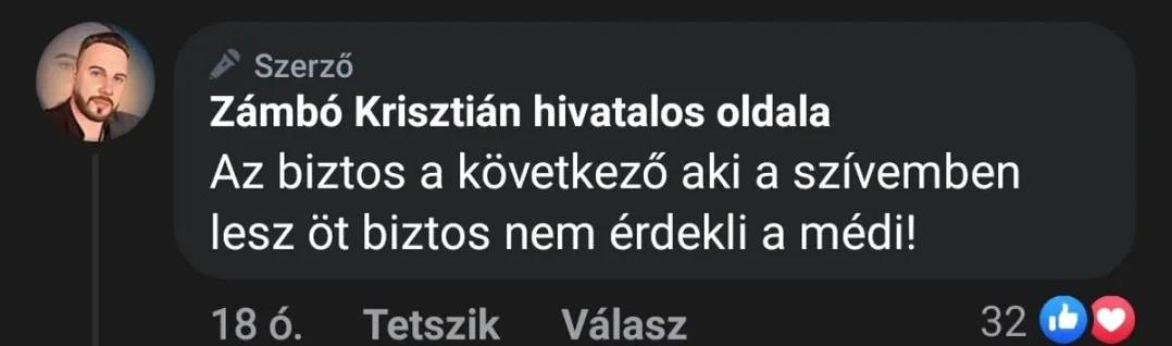 Mégis úgy tűnik, hogy a népszerűség lehetett a szakítás egyik oka. Hiszen az utóbbi években Zsuzsi is ismertté, mitöbb népszerűvé vált és szép lassan kilépett Krisztián árnyékából és több műsorban is megcsillogtatta humorát, persze mindig az énekes mellett, de tagadhatatlan, hogy kiragyogott mellőle. Zsuzsikát egyre többen kezdték követni a közösségi felületein, és mára ha nem is emelkedett a legnagyobbak közé, szép influenszer karriert épített. Éppen ez lehetett az egyik oka annak, hogy véget ért a sztárpár kapcsolata. Legalábbis erre utal Zámbó Krisztián egy saját posztja alá írt kommentje.