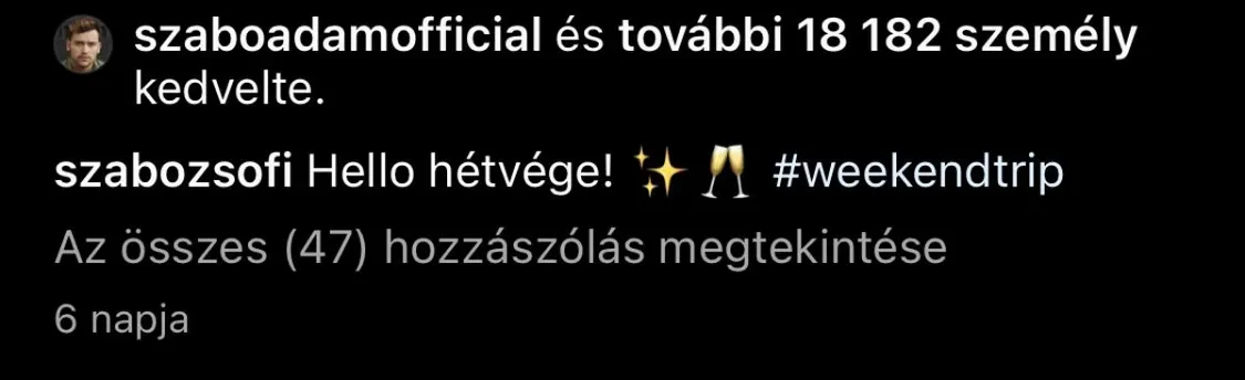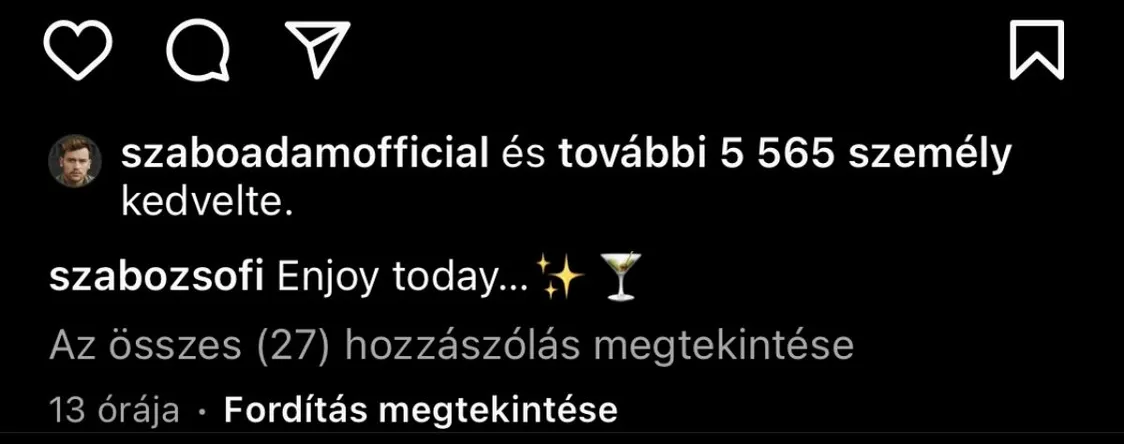 A jelek szerint nem bánkódik a szakítás miatt Szabó Ádám, aki alig két hete erősítette meg a hírt, hogy igazak a pletykák, és valóban külön utakon folytatják Bernivel. A Ripost-nak ugyanis feltűnt, hogy az ismert énekes bőszen kedveli névrokona, Szabó Zsófi fotóit, pedig korábban nem igazán tartozott az elfoglaltságai közé, hogy a tévés bejegyzéseit vizslassa. Lényegében teljesen mindegy, hogy milyen posztot oszt meg Zsófi: szelfik, reklám-, bikinifotók, Ádám nem válogat, rögtön kedveli azokat.