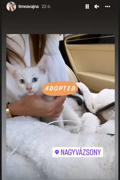 „Nagyim fehér cicája meghalt (gyomorrákban 15 évesen) és annyira bele volt betegedve, hogy a lelkének csak egy új kiscica segített. Nagyvázsonyban örökbe fogadtam egy édes tüneményt és holnap viszem a nagyihoz” - írta Timi, aki már oda is adta nagymamájának a cicát.