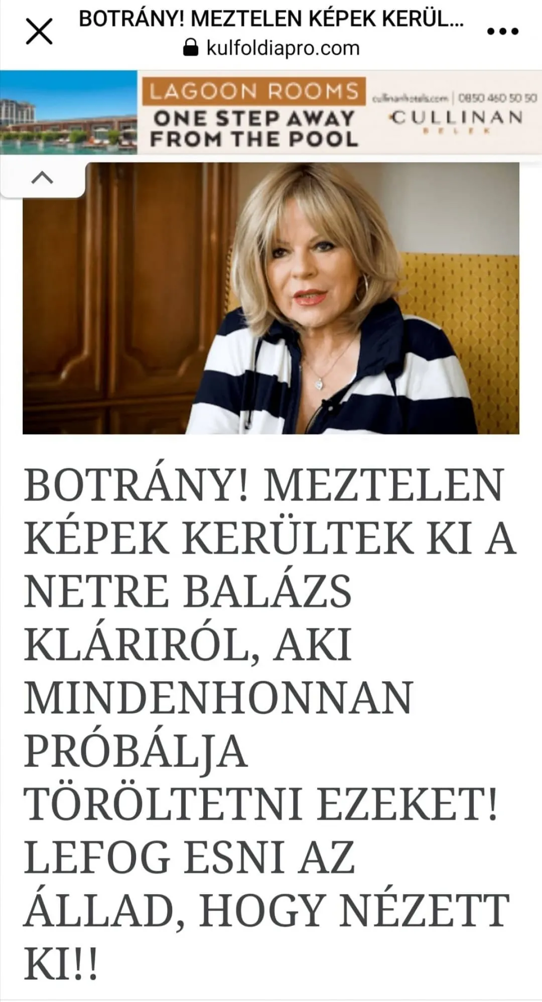 Sajnos más sem kell a pofátlan álhírgyárosoknak, akik arc nélkül és névtelenségbe burkolózva találnak ki durvábbnál durvább hazugságokat a házaspárról, különösen Balázs Kláriról. A legújabb eset egészen felháborító: a kulfoldiapro.com nevezetű (már elsőre kétesnek tűnő) portál nagy szalagcímmel hirdeti, hogy meztelen képek szivárogtak ki az internetre Klárikáról, aki mindent elkövet, hogy nyom nélkül eltüntesse azokat, de sajnos sikertelenül. A hangzatos címre kattintva persze jön a csalódást keltő cikk. Egy nehezen értelmezhető kamunyilatkozat az énekesnőtől, amiben arról beszél, hogy mennyire szeret meztelenül napozni, majd egy régi fotó, ahol történetesen bikiniben pózol a férjével.