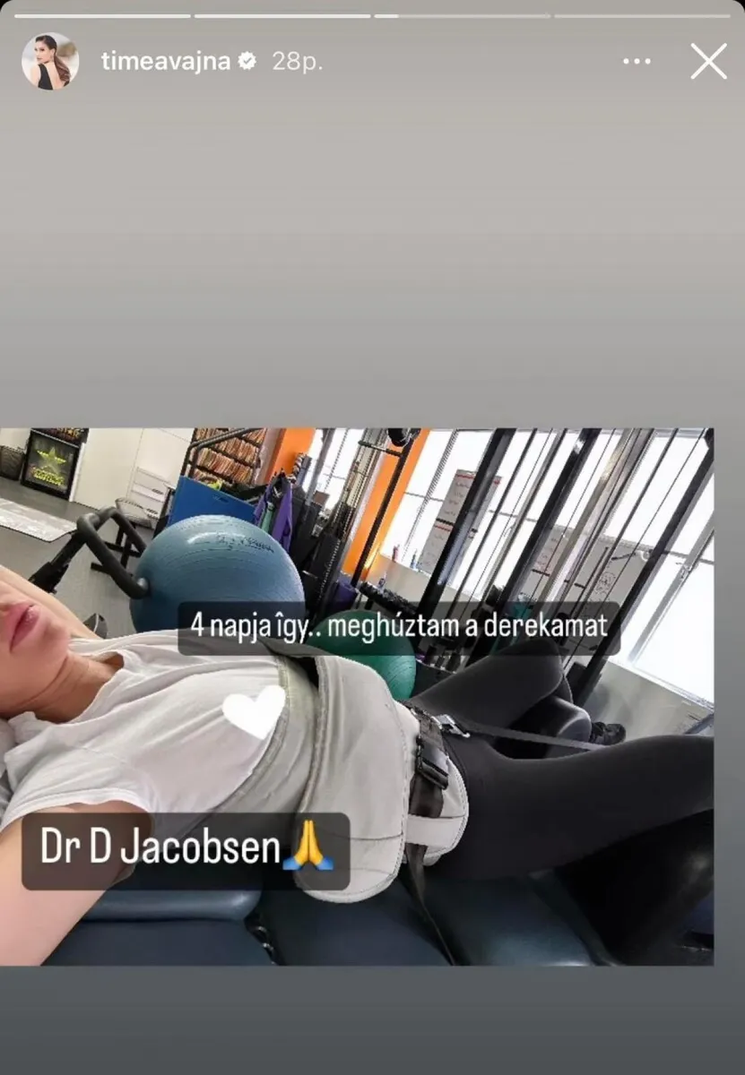 Nincs túl jó egészségi állapotban Vajna Tímea, legalábbis erre enged következtetni az a fotó, amit az Instagram-oldalán a minap közzétett. A felvételen jól látszik, hogy egy óriási leszorító övet kell viselnie az özvegynek, ugyanis meghúzta a derekát. Hogy ez hogyan történt pontosan azt nem osztott meg Timi, de orvosa azonnal a segítségére volt, most pedig gyógytornával gyógyul.