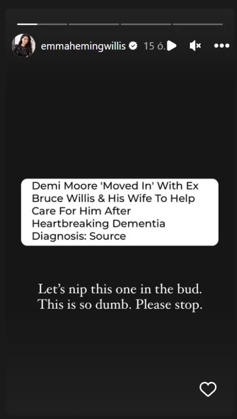 Továbbá közösségi oldalán cáfolta azokat a híreket, miszerint Bruce volt felesége, Demi Moore hozzájuk költözött, hogy segítsen a demens színész gondozásában.