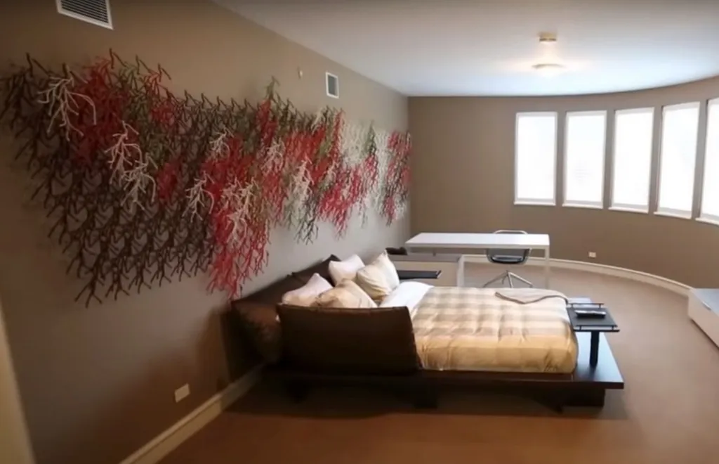 A chicagói kastély kilenc hálószobával, 15 fürdőszobával, plusz négy mosdóval, 14 garázshellyel, egy séf konyhával, egy otthoni edzőteremmel, egy fedett kosárlabdapályával és egy szabadtéri medencével rendelkezik.