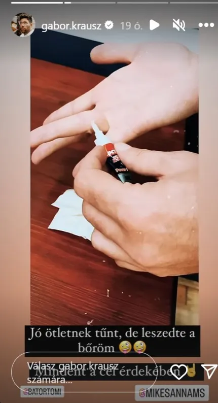 A sztárséf a próbateremből jelentkezett be a minap, ám a tánc helyett arról sztorizott, hogy pillanatragasztóval rögzíti az ujjait. Nyilván mindenkiben felmerült a kérdés, hogy mégis erre mi szükség van? Nos, Gábor szerint így egyszerűbb megtanulnia, hogy táncközben összeszorítsa az ujjait, az pedig, hogy közben az anyag leszedte a bőrét, csak járulékos veszteség!