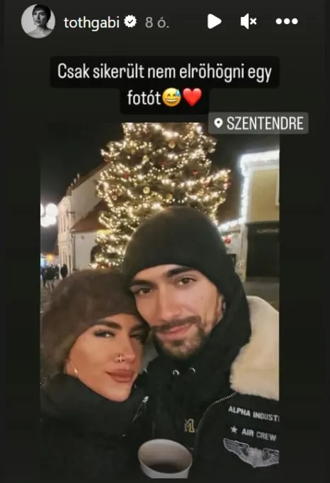 Az énekesnő nemrég Szentendrén járt, ahová Papp Máté Bence is elkísérte. A városba kiállított hatalmas karácsonyfa pedig a szerelmespárt is megérintette, gyorsan csináltak is egy közös fotót előtte.