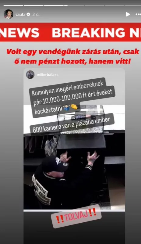 Aki nyomon követi Csuti életét, az tudja, hogy van egy kis üzlete az egyik plázában. Rendszeresen szokta reklámozni, és szíve-lelke benne van a boltjában. Ebben a pillanatban azonban rendkívül feldúltan posztolt. Betörtek ugyanis, és kirabolták a kasszát. Szerencsére sok biztonsági kamera van a plázában, így sikerült felvételeket készíteni a tettesről.