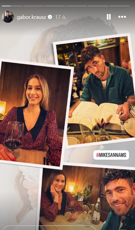 A meghitt vacsoráról a táncosnő is megosztott pár fotót. Egyiken pedig egy csodás vörös rózsacsokor is feltűnik, így jól látszik, Krausz Gábor továbbra is rendkívül odafigyel a romantikára, hiába kötötték össze az életüket immáron örökre.