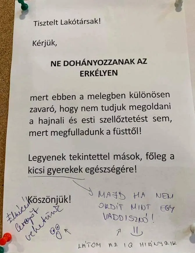 Nyilván indulatokat szül, ha a szomszéd rongál, de ha a többiek által gondozott virágokat töri le, számíthat az egész közösség haragjára. A kulturált stílus azonban a tacepaón is kívánatos, hívja fel a figyelmet egy másik lakó, és szívecskével zárta válaszát, nehogy azt gondolják, a rosszindulat beszél belőle.