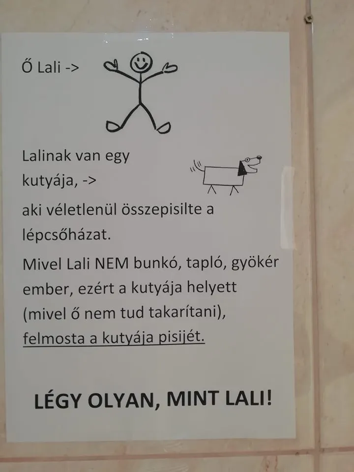 Vannak, akik nem szöveggel, hanem rajzokkal üzennek. A történet tanúsága szerint a pálcikaember feltakarít a saját kutyája után, feltehetően nem úgy, mint az, akinek címezték a dorgálást.