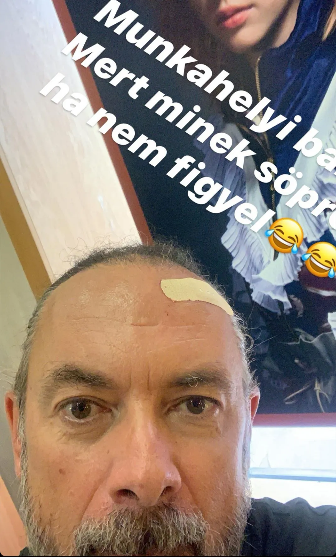 A balesetről csak egy ragtapasz tanúskodik, szerencsére a fodrász egy apróbb karcolással megúszta az egészet. „Munkahelyi baleset... Minek söprök, ha nem figyelek?!” – írta a fotóhoz Zsidró pár nevetős hangulatjellel mellékelve.