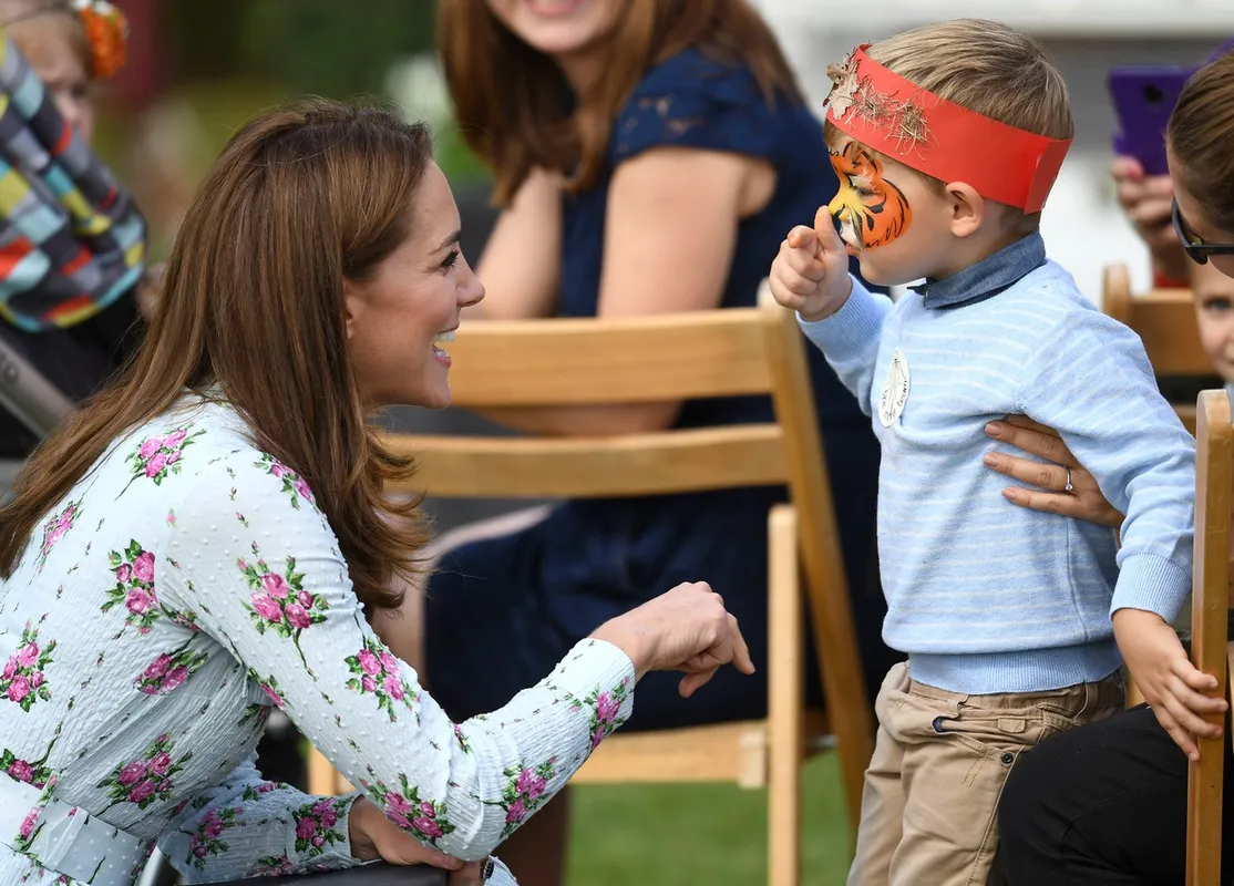 Sugárzóan gyönyörű volt, ahogy beszélgetett és a gyerekekkel játszott virágos Emilia Wickstead ruhájában. Napközben beszélgetett a hároméves Dylannal is, akit megkérdezett a tigrises arcfestésről. A kisfiú azonban nem volt túlzottan lenyőgözve, és zseniális választ adott.