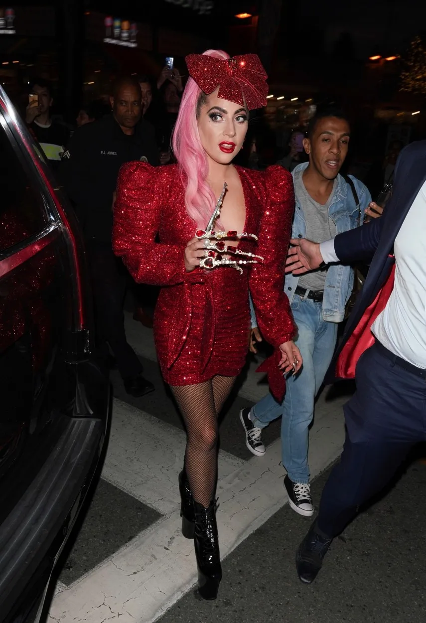 Lady Gagát is magával ragadta a karácsony hangulata, de természetesen a lehető leggagásabban. Az énekesnő egy merészen dekoltált piros miniben, és egy hozzá illő masnival a hajában érkezett meg a kozmetikai cége partijára.