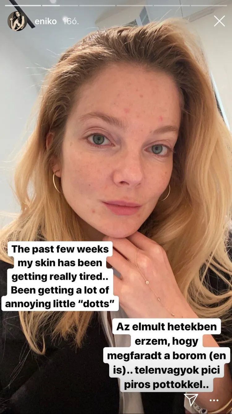 Mihalik Enikő nem csinált belőle hiúsági kérdést, megmutatta a nagyvilágnak, hogy hiába szupermodell, bizony ő sem tökéletes. A minap fejezett be egy nagyobb fotózást, ám a rengeteg smink nem kímélte meg a bőrét. Enikő az Instagramon mutatta meg natúr arcát, ami után azonnal bejelentkezett egy kozmetikai kezelésre.
