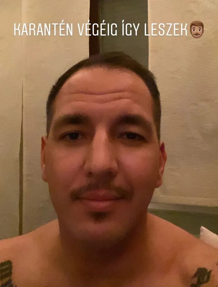 „Karantén végéig így leszek” – írta poénosan a fotóhoz a rapper.