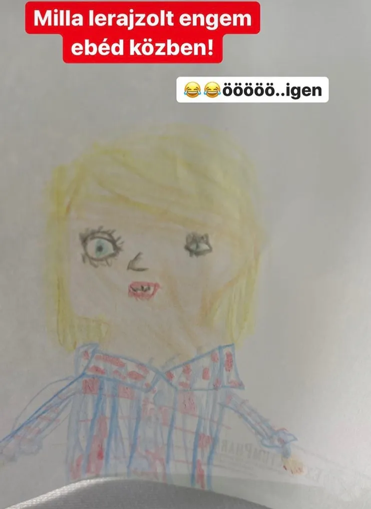A híresség nagyon büszke kislányára, hiszen szívből készítette a rajzot az édesanyjának. Ám Babett posztjából az derült ki, hogy nem pont így képzelte el magát. Ezt viccesen a követői tudtára adta.
