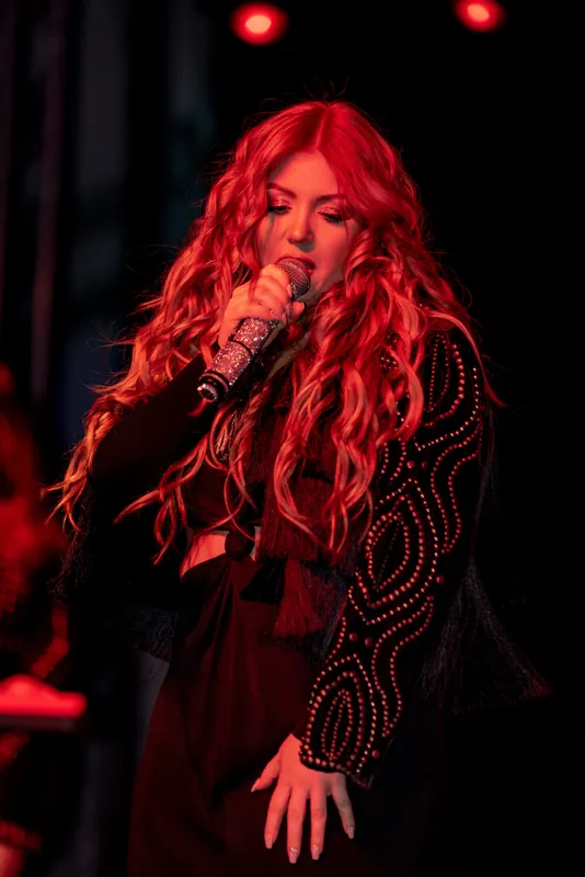 Reni egy piros, testhezálló, mélyen dekoltált ruhát választott, a férfi rajongói legnagyobb örömére.