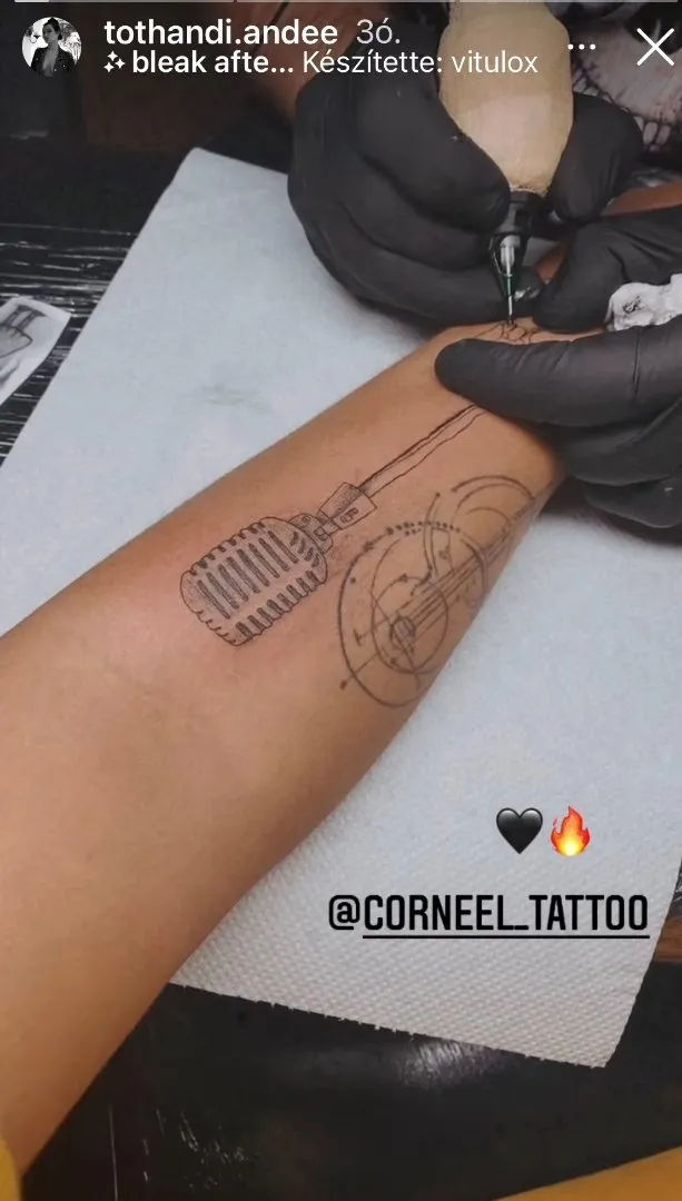 Ezen felül az alkarjára is került egy újabb kép: egy mikrofon díszíti ezentúl a bőrét.