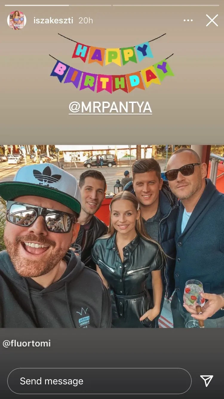 A páros ezúttal Fluor Tomiékkal ünnepelte egy barátjuk születésnapját, így született meg a közös kép.