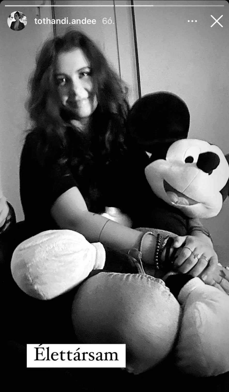 - írta az Instagram-sztorijában az énekesnő, amint egy méretes Mickey egér plüsst ölelget.