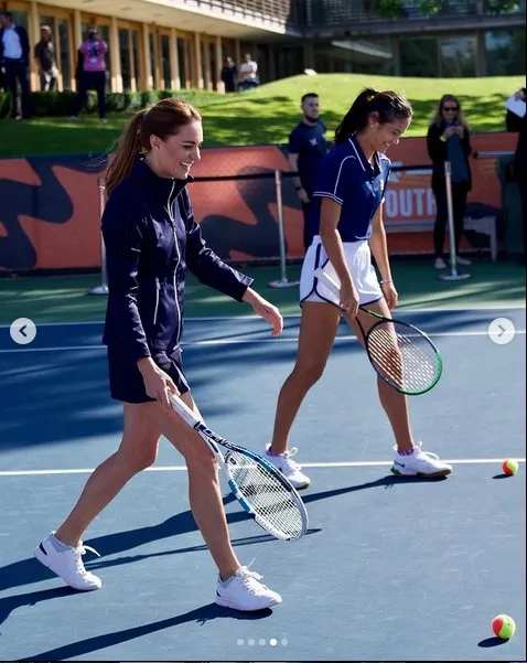 Vilmos herceg felesége az új brit teniszcsillaggal, Emma Raducanuval játszott egy meccset.