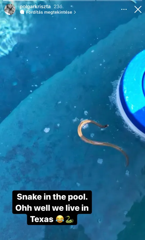 „Kígyó a medencében. Nos, igen. Texasban élünk” – írta a fotóhoz Kriszta.