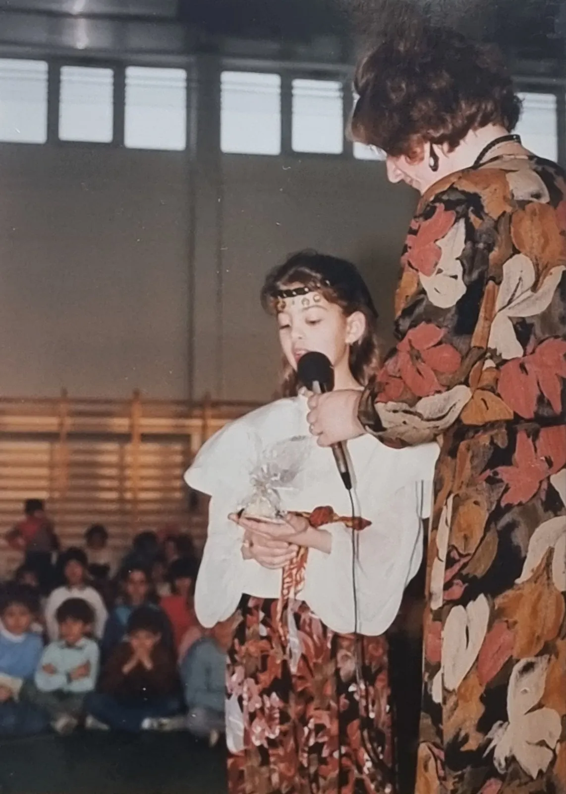 „Ez a fotó egy általános iskolai farsangon készült, ahol én voltam az, aki előadta, mivel is készült az osztályunk. Én sosem készültem tudatosan arra, hogy majd műsorvezető leszek, nem egy elhatározás és komoly döntés eredménye, hogy ezzel foglalkozom, valahogy az élet alakult így és sodort ebbe az irányba, mindig ezt szoktam mondani. Az utóbbi időben azonban rendre kerülnek elő olyan fotók, emlékek, amiket én már el is felejtettem, és amik azt igazolják, bizony, ez már gyerekként is valahol ott motoszkált bennem. Ez a farsangi fotó is bizonyíték erre” - mesélte Nóri.
