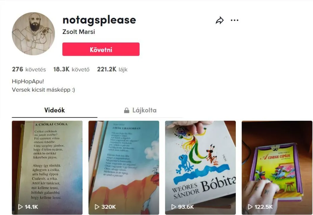 Nos, ha nincs a TikTok, talán sosem csendülnek fel ezek a versek veretős ritmusokra szabva, de a platform létezik, ahogyan Marsi Zsolt is, aki a platformon notagsplease néven fut. Így most meghallgathatjuk, hogyan szól például a Csókai csóka, ha egy kicsit keményebbre vesszük a figurát.