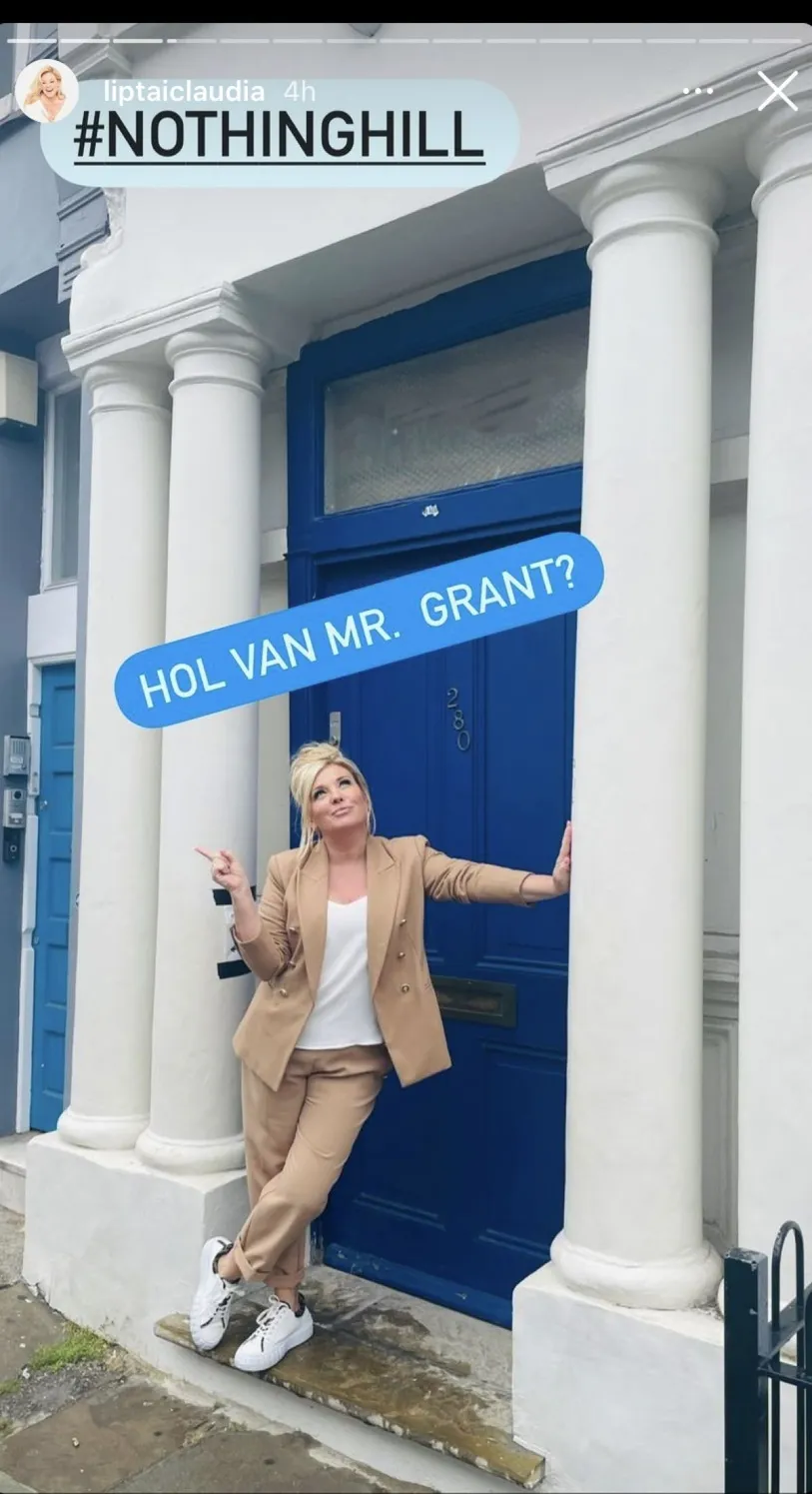 A műsorvezető azért az ünneplés közben kicsit ki is kacsintott férje mellől. Ellátogatott ugyanis a házhoz, ahol a Sztárom a párom című filmben a híres Hugh Grant élt. "Hol van Mr. Grant?" - kérdezi Liptai Instagram sztorijában.