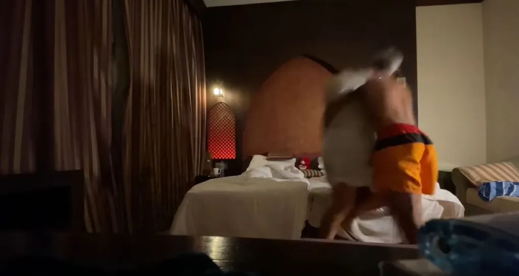 A videón minden bizonnyal egy megrendezett jelenetet látunk, vagyis feltehetően az Irénkén és Lacin gazdagodó "menedzsment" kérte őket az éjszakai csetepatéra, mégsem helyénvaló, hogy Laci megüti, vízzel önti le, majd szabályosan az ágyhoz vágja Irénkét, aki kínjában csak nevetgél.