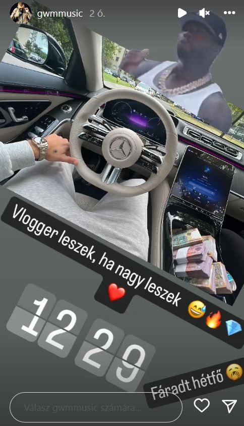 Úgy tűnik, G.w.M szereti tudatni a külvilággal, hogy bizony mindene megvan. Legalábbis jó pár köteg tízezres és húszezres pihen a luxusautójában, pont olyan helyen, hogy az mindenki számára jól látható legyen.