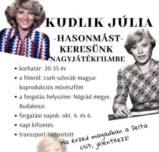 Különös "álláshirdetésre" bukkantunk egy specifikus szakmai csoportban, amit mindenképpen látnod kell. Ha te magad nem is hasonlítasz kísértetiesen Kudlik Julira, amikor a 30-as éveiben járt, talán ismersz valakit, akire ha ránézel, a honi televíziózás legendás alakját látod.