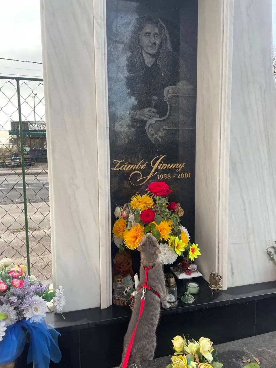 A minap viszont egy egészen különleges "vendég" járt Jimmy sírjánál! Egészen pontosan egy cirmos macska, ami érdeklődéssel szemlélte és szaglászta a síron elhelyezett friss virágokat.